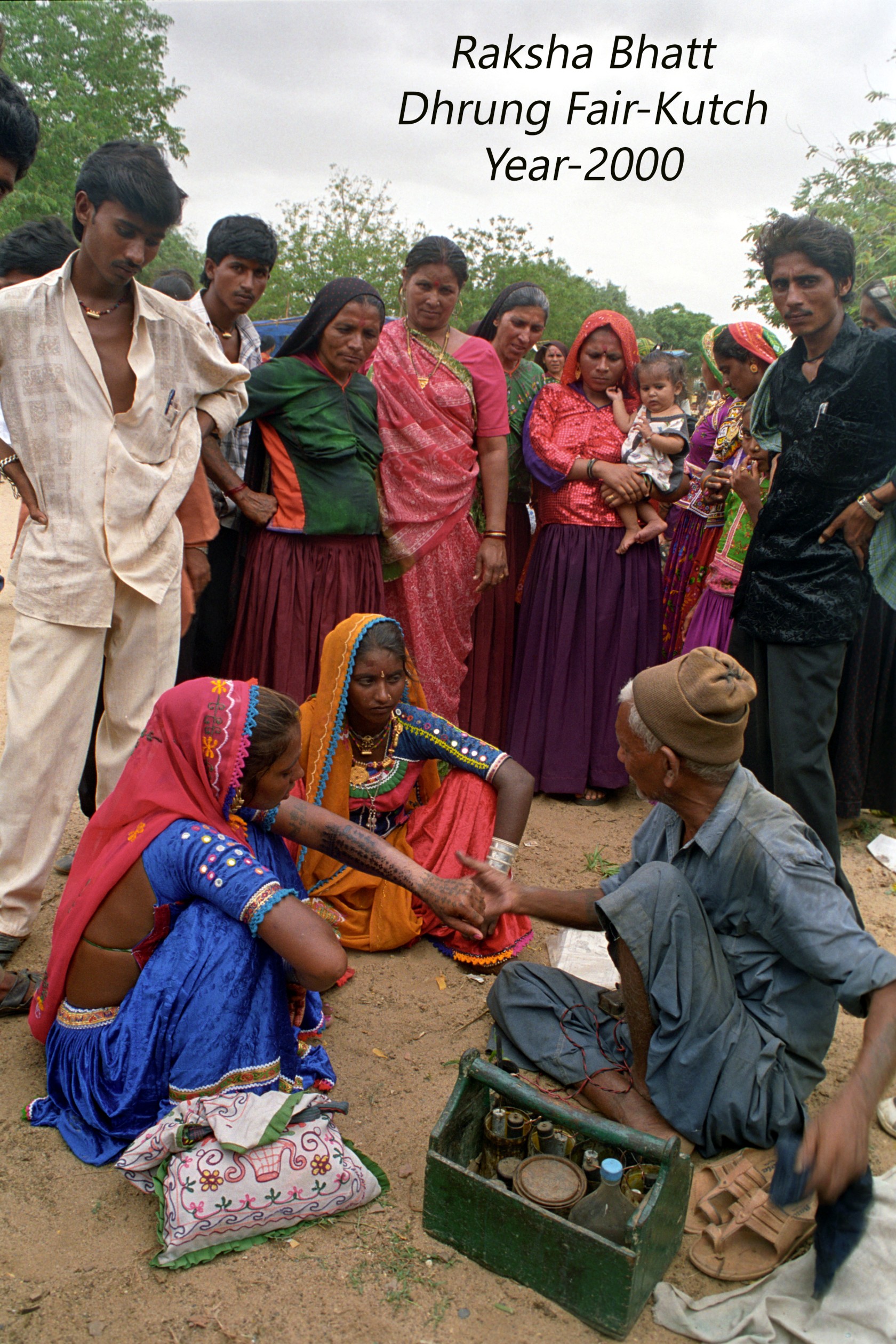 માર્ચ મહિનાના તડકે મેળાની ભીડમાં મનમાં છૂંદણાનો ઈતિહાસ જોઈ લેવાનું મન લઈને ફરતી હતી ત્યાં મેં એક મોટી કાળી છત્રી આસપાસ માથે ઓઢણી ઓઢેલી રબારી મુગ્ધાઓનું ટોળું જોયું. એકબીજા પર હાથ મુકિને છત્રી નીચે મહેંદી મુકવાના બ્લોક લઈને બેઠેલા મહેંદિ વાળા ભાઈ પાસે ભેગી થઈ ગયેલી કિશોરવયની મસ્તીખોર રબારી દીકરીઓને જીલી ત્યારે પ્રસાદાલયની દીવાલ પર મોટા અક્ષરે લખેલા ‘જી નામ’ સાથે કચ્છના કબીર ગણાતાં દાદા મેકરણની કેટલીક સાખીઓને પણ દીવાલો પર લખેલી જોઈ અને કચ્છી ભાષામાં લખેલી સાખીઓના વાંચન સાથે મેળામાં આવેલા લોકો સાથે બપોરનું ભોજન પણ લીધું.