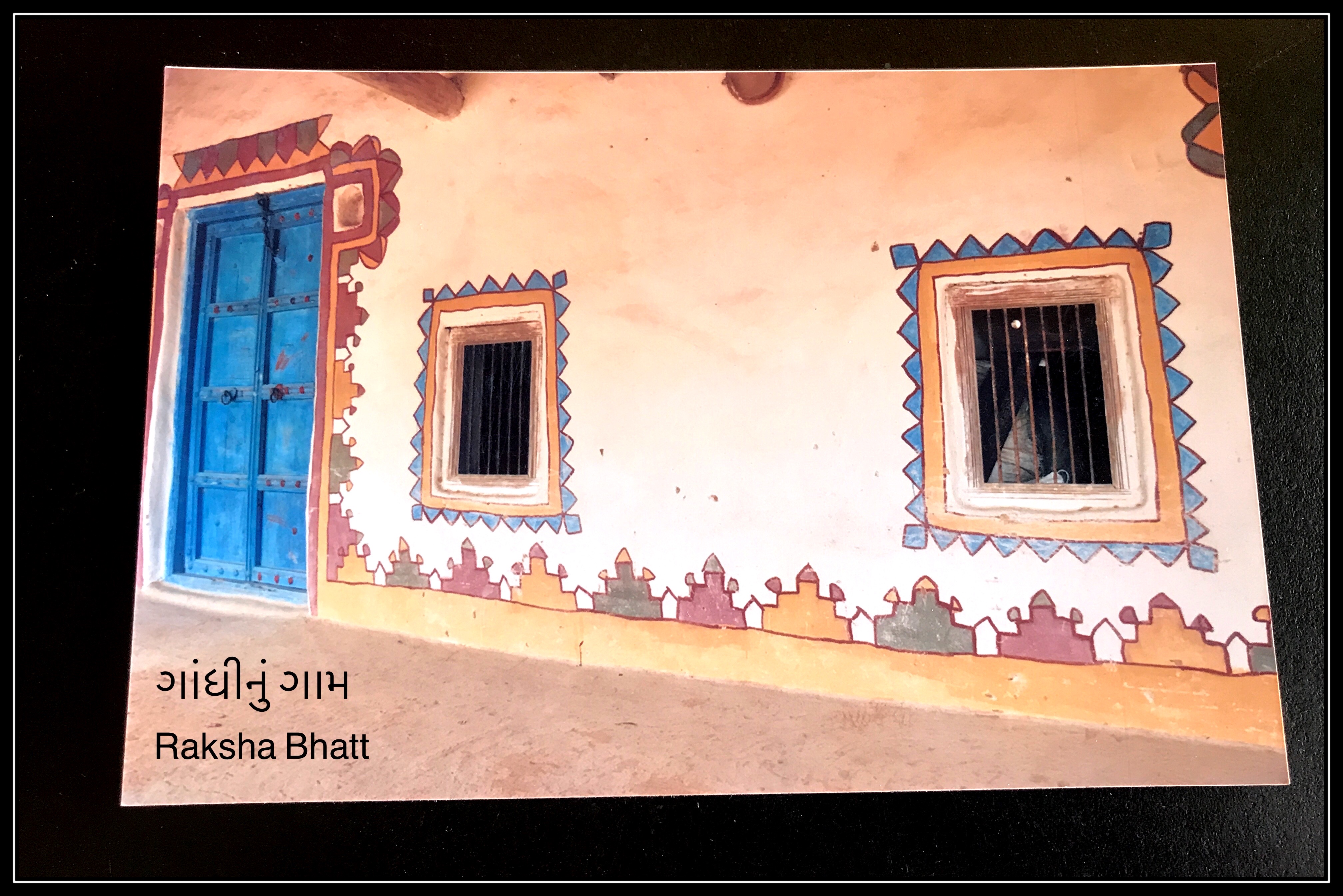 લગાન ફિલ્મ જેવા આવા એકદમ તૈયાર સેટમાં, unlike me, મને પણ arrange photographyનો પાનો ચડ્યો અને off white દીવાલ વચ્ચે રહેલી cute નાની બારી અને તેની ધારે ધારે દોરેલા કાંગરા વાળા ભીંતચિત્રો વચ્ચે મેં ગળી ભૂરી રેશમી કંજરી-ઘાઘરી પહેરેલી ગોરાને ગોઠવી ફોટા પાડ્યા.