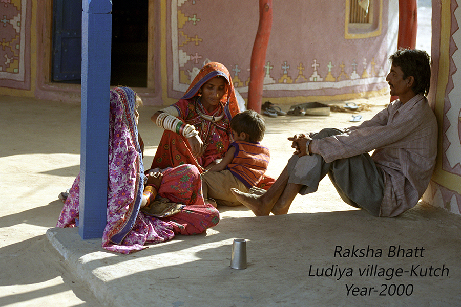 અભરાઈ પર ચમકતાં વાસણની હરોળ અને mud-mirror workથી શોભતી માટીની નાની સફેદ કબાટડિમાં રખાતું ભોજન મને મેઘવાળોની જીવનશૈલીના લયમાં ડૂબાડતું હતું અને એવા સો ટકાના લયમાં મેં આ ગાંધીના ગામને જીલ્યું ત્યારે એ વર્ષોમાં ખીસ્સા વાળી કફની અને રેગ્યુલર પતિયાલા પહેરેલી હું ભરબપોરની દોઢ-બે કલાકને બાદ કરતાં film roll વાળો એસ.એલ.આર કેમેરા હાથમાં લઈ સંયોજનોના લોભે લુડિયા ગામના સામ સામે રહેલા ભુંગાઓ વચ્ચે ચાલ્યા કરતી.