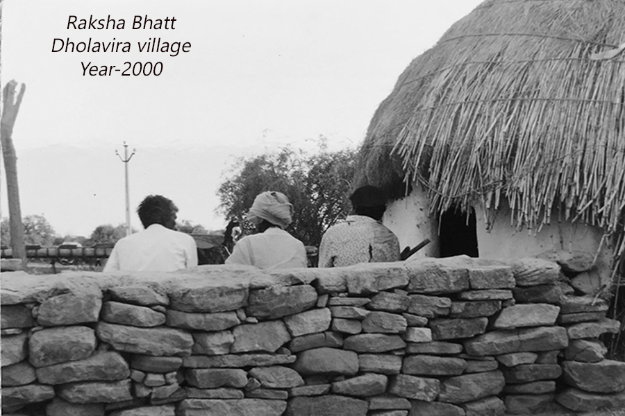 ધોળાવીરા ગામમાંથી જ મળતાં પથ્થરોની કાચી compound wallની અંદર સફેદ ખમીશ-લેંઘો અને સફેદ પાઘડી પહેરેલા ત્રણ-ચાર પુરુષોએ ગાર લીપેલા ભુંગાના આંગણે ખાટલો ઢાળ્યો હોય અને ખૂંટે બકરી બાંધી હોય તેવા રૂપકડા સંયોજનો વીણતી, thatched  roofing વાળા ધોળાવેલા ઘરોને સંયોજતી અને  'કોટડા ટીંબા'નો રસ્તો પૂછતી હું આગળ ચાલું ત્યારે કચ્છી બોલીમાં જવાબ મળતો રહે કે ‘જાજુ હાલવાનું નથી ઉંવા જ છે.’