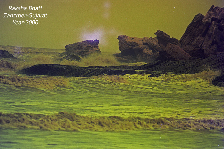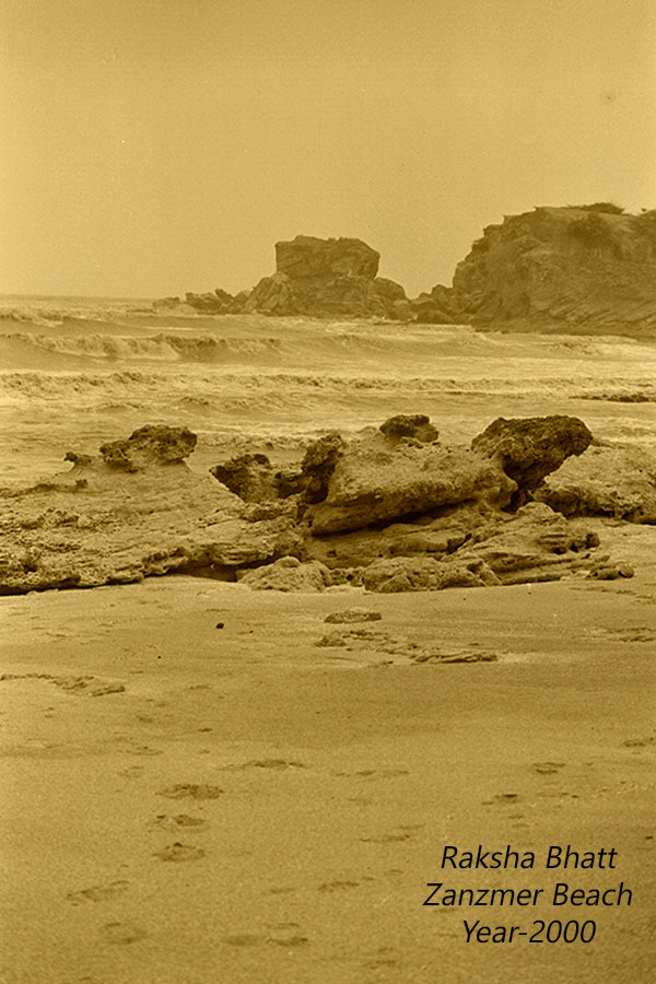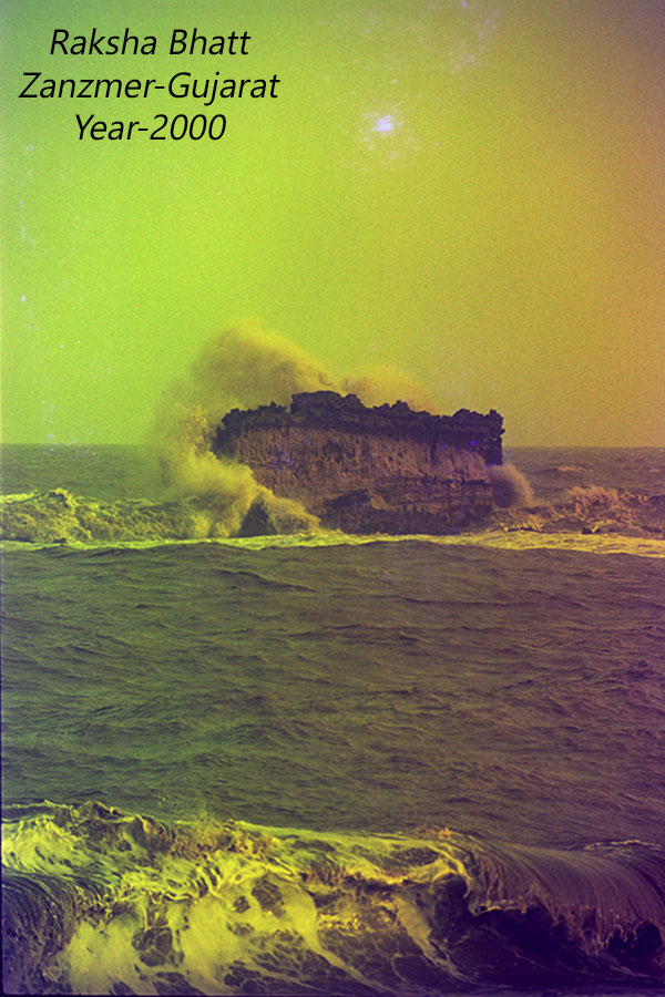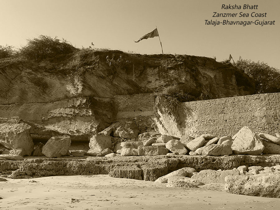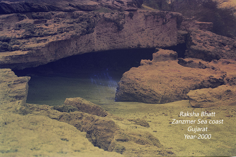 આવા સંકલ્પે પહેલા તો ઝાંઝમેરના દરિયા કાંઠે રહેલા ખડકોની abstract photography કરી અને બપોરની strong lightને થોડિ warm કરવા માટે કેમેરાના lens પર graduated sepia filter ચડાવ્યું જે filter મારી roll filmની photographyના એ દિવસોમાં હું મારી સાથે જ રાખતી અને જો કોઈ સ્થળે-સ્થાપત્યે બપોરના આકરા તડકે પહોંચતી તો લેન્સ પર એ sepia tone filterને એવી રીતે ચડાવતી કે મેં પાડેલા ફોટોને કે compose કરેલા સંયોજનને soft brown tint મળે અને એ હૂંફાળી vintage image nostalgic feel આપી કોઈ સ્થાપત્ય, સ્મારક કે ખડક-ખંડેરને એકદમ mysterious mood બક્ષે.