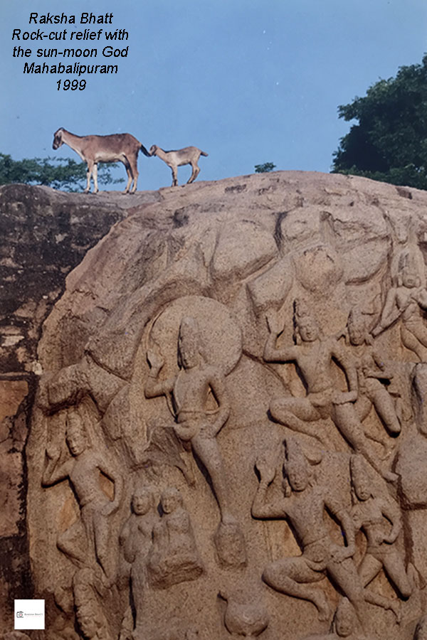 Solid કે living rock પર આલેખાયેલું આ વિશાળ open air rock-cut relief વિશ્વનું સૌથી મોટું rock-cut relief હતું તેની ખબર તો પછી પડી પરંતુ સમુદ્રાભિમુખ આ સ્મારકે મને આજથી, almost, છવ્વીસ વર્ષ પહેલા bas-releifની સદીઓ પ્રાચીન rock artમાં ડૂબાડી અને વચ્ચે તિરાડ ધરાવતાં બે મહાકાય પાષાણો પર કંડારેલા શિલ્પોને મેં સૂર્ય પ્રકાશની ઓથે જીલીને સિંહમુખ વાળા સ્તંભોના એક સ્મારકને લીલાછમ દેશી વૃક્ષના સાનિધ્યે જીલ્યું ત્યારે વારંવાર મારા સંયોજનોમાં હાજરી પુરાવતી બકરીઓ તો હતી જ પરંતુ સુર્ય પ્રકાશનો છાયો-પડછાયો પણ મારા કેટલાક compositionsને સુંદર બનાવી રહ્યો હતો.