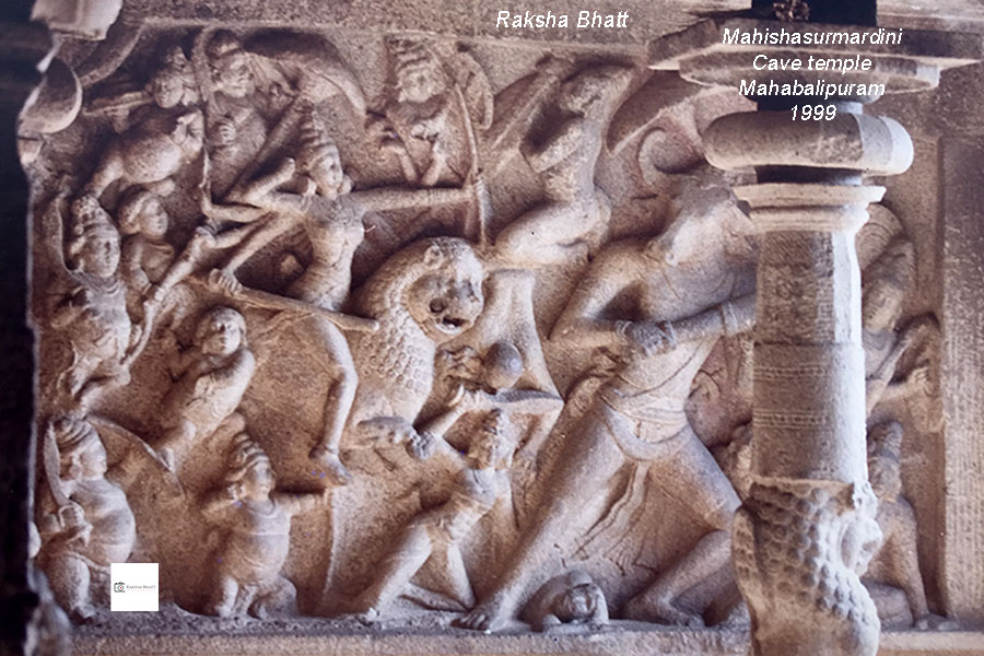 LIght house પરથી નીરખેલો કોરોમંડલ સમુદ્ર તટ અને મહાબલિપુરમની ઉજળી લીલાશ પછી બરાબર તેની નીચે રહેલ આ મહિષાસુરમર્દિની ગુફા મંદિર તેના સ્તંભો વાળા મંડપને કારણે, પથ્થરના માંડવે મહેમાન થયા હોઈએ તેવો ભાસ કરાવતું હતું.