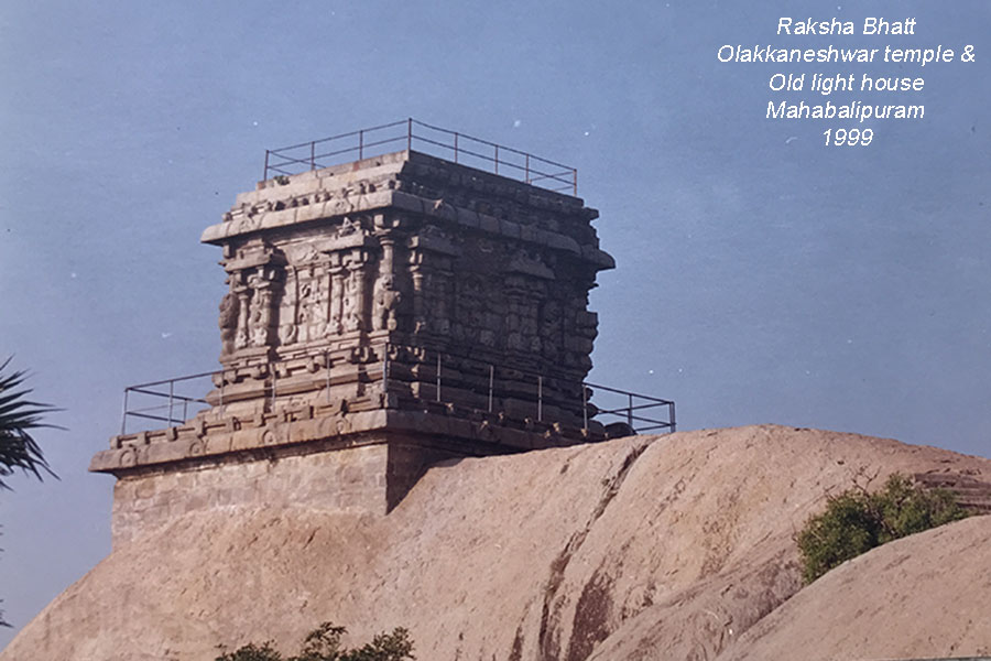 મહાબલિપુરમ પહોંચ્યાની પહેલી જ સાંજે બંગાળના ઉપસાગરના કોરોમંડળ સમુદ્ર તટે સ્થિત તટ મંદિર જોયા પછી બીજી સવારે અમે સૌ પ્રથમ પંચરથ સ્મારકો અને પછી વિશ્વનું સૌથી મોટુ, ગંગા અવતરણ અને અર્જુનના તપ તરીકે ઓળખાતું, Rock-cut relief explore કર્યું અને પછી પહોંચ્યા જૂના લાઈટ હાઉસ તરીકે જાણીતા ઓલાક્કનેશ્વર મંદિરે.