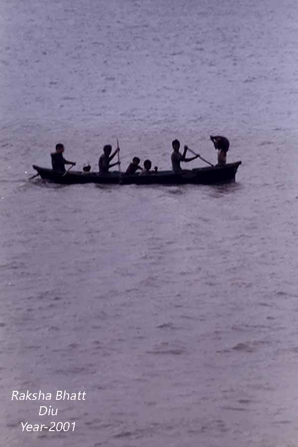 જુલાઈના વરસાદિયા દિવસોમાં દીવનું વાતાવરણ તો વાદળીયું હતું અને ચારેય બાજુ અરબી સમુદ્રના જળથી સજળ દીવમાં મેં ફટફટીયા પર બેઠા બેઠા જ, દૂરથી આવતી, એક હોડી જોઈ જેમાં ત્રણ જણા હલેસા મારતા હતા અને બાકિના ત્રણ નાના છોકરાવ અમને ફટફટીયા પર જોઈને હસતાં હતા.