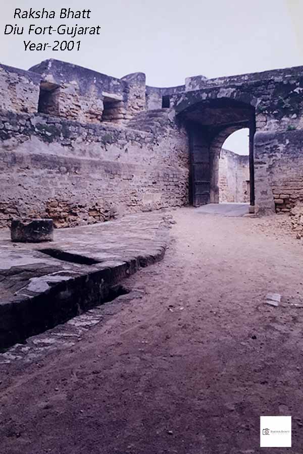 એ વિચાર મમળાવતા અમે નાનકડા પુલને ઓળંગીને કિલ્લાના મુખ્ય પ્રવેશદ્વારે પહોંચ્યા. ત્રણ બાજુએથી હિંદ મહાસાગરના ભાગ એવા અરબી સમુદ્રથી ઘેરાયેલા આ ઐતિહાસિક દીવ કિલ્લાની કોઈ પ્રવેશ ટિકિટ તો નોહતી એટલે અમે, બેરોકટોક, અંદર પ્રવેશ્યા.