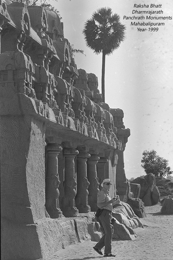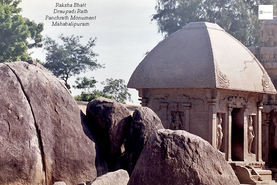 સાતમી સદીમાં પલ્લવ રાજવંશના નરસિંહવર્મન પ્રથમના શાસનકાળમાં સંરચિત દ્રૌપદી અને પાંચ પાંડવ રથો અને તેની pink granite સંરચનાને કેમેરાની જોળીમાં ભરવા માટે મેં મારા Roll કેમેરાને હાથમાં લીધો જેમ કોઈ ચિત્રકાર હાથમાં brush લઈ રેખાંકન કરવા સજ્જ થાય.
